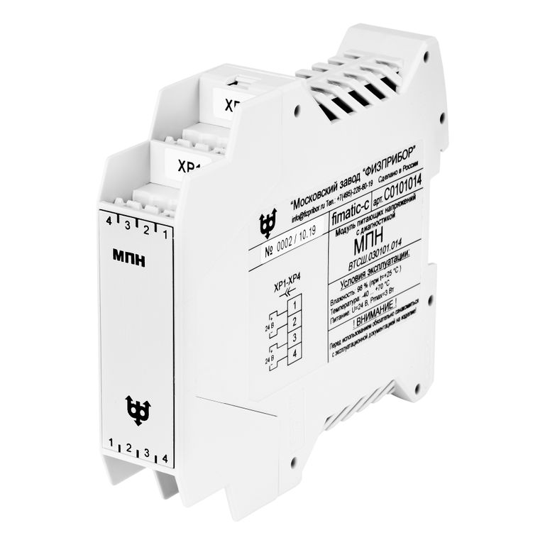 Модули питающих напряжений МПН и модули питающих напряжений с диагностикой МПН-Д предназначены для питания цепей формирования входных дискретных сигналов типа «сухой контакт» и питания цепей приёма дискретных сигналов типа «обмотка реле», «входной транзистор/диод оптореле».